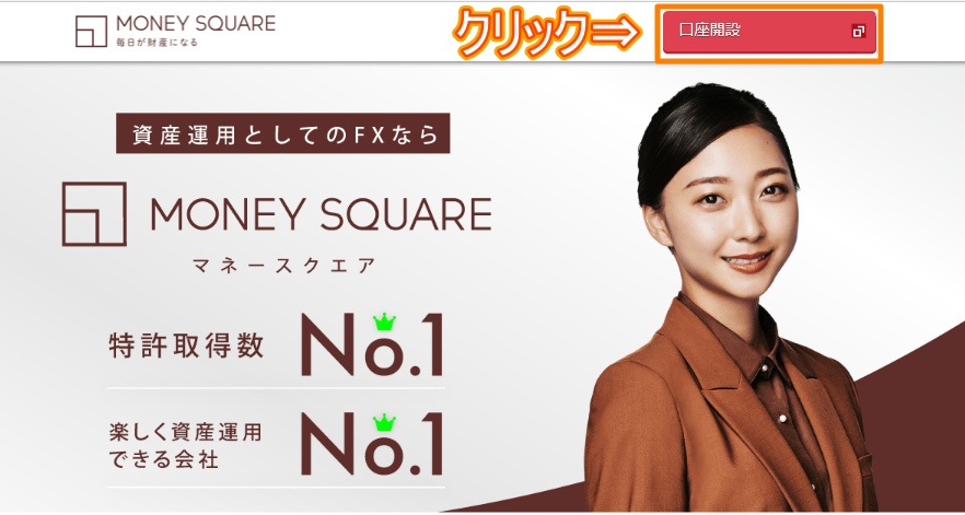 続いて特設ページから通常の口座開設ページに飛んだら、下の画像の朱枠の『口座開設』をクリックします。