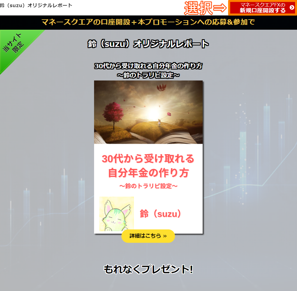 しかも今なら口座開設特典として、わたしが書き下ろした限定レポートが貰えます!!