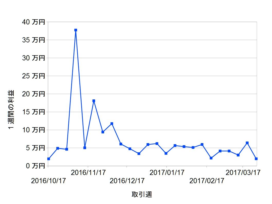 下の図はトラリピの1週間ごとの利益です(´∀`)