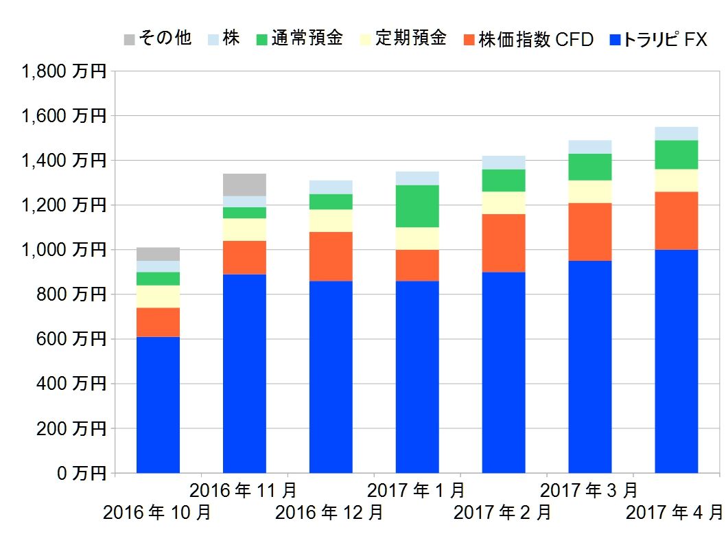 2017年4月末時点の資産状況は約1,550万円でした(^^♪
