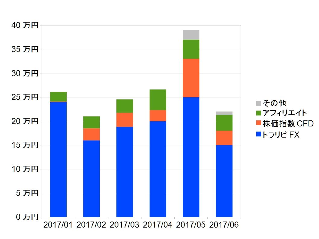 2017年6月の不労所得は約22万円でした。