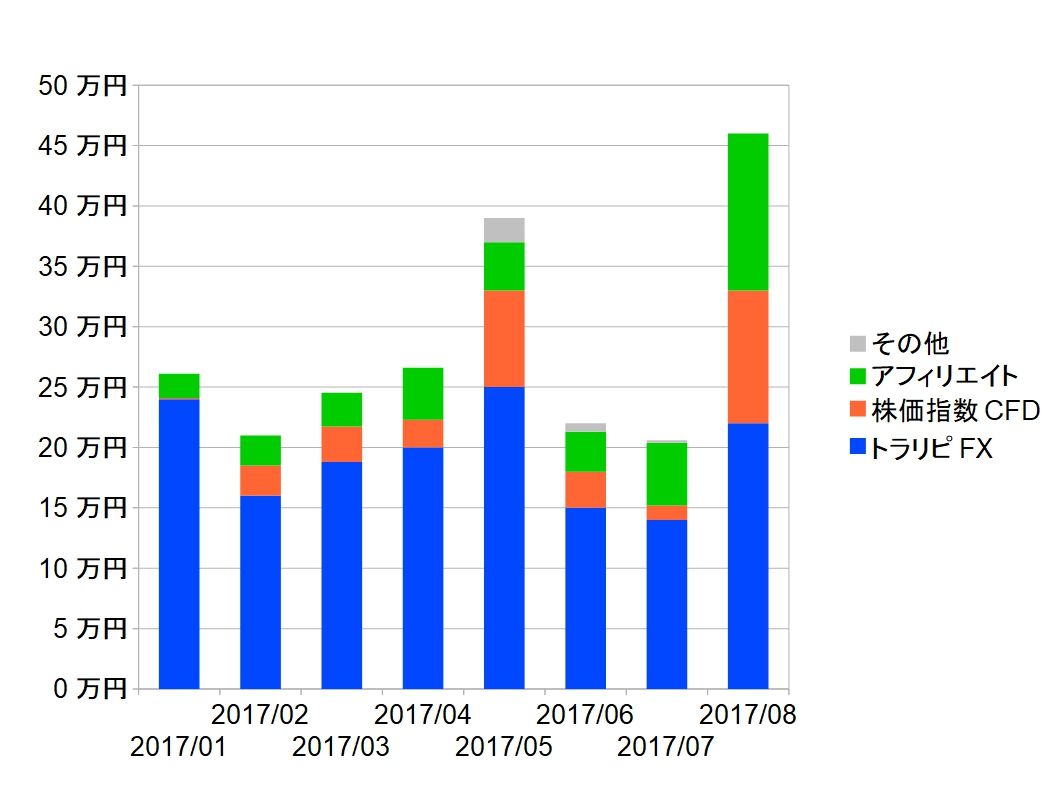 2017年8月の不労所得は約46万円でした。
