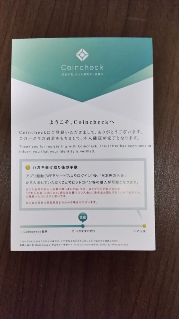本人確認が完了すると以下のようなはがきが届きますので、はがきが届くまで待ちましょう。