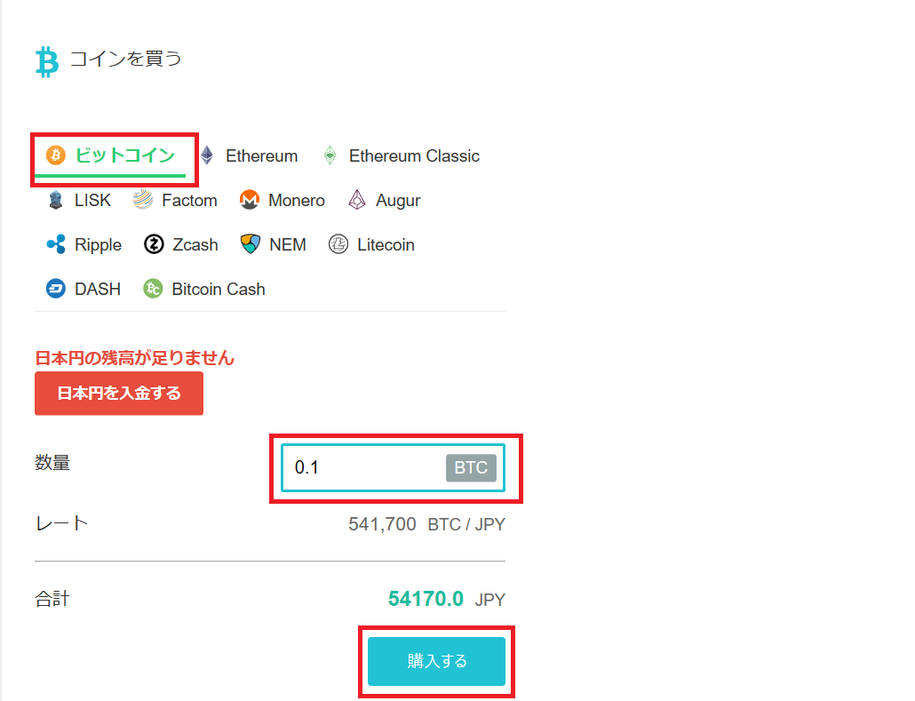 私もはじめにBitcoinを購入した際は0.004BTC=約2千円分を購入しました。