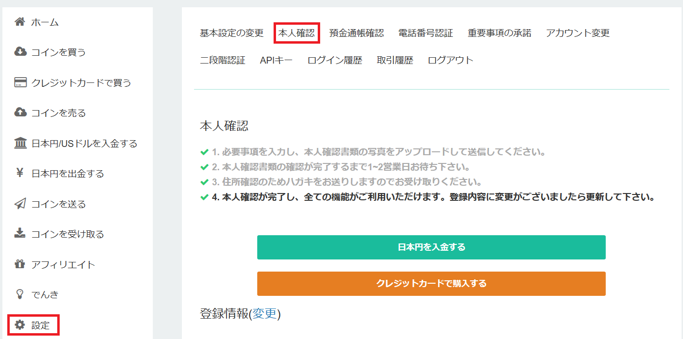 『設定』⇒『本人確認』から本人確認書類を提出してい下さい。