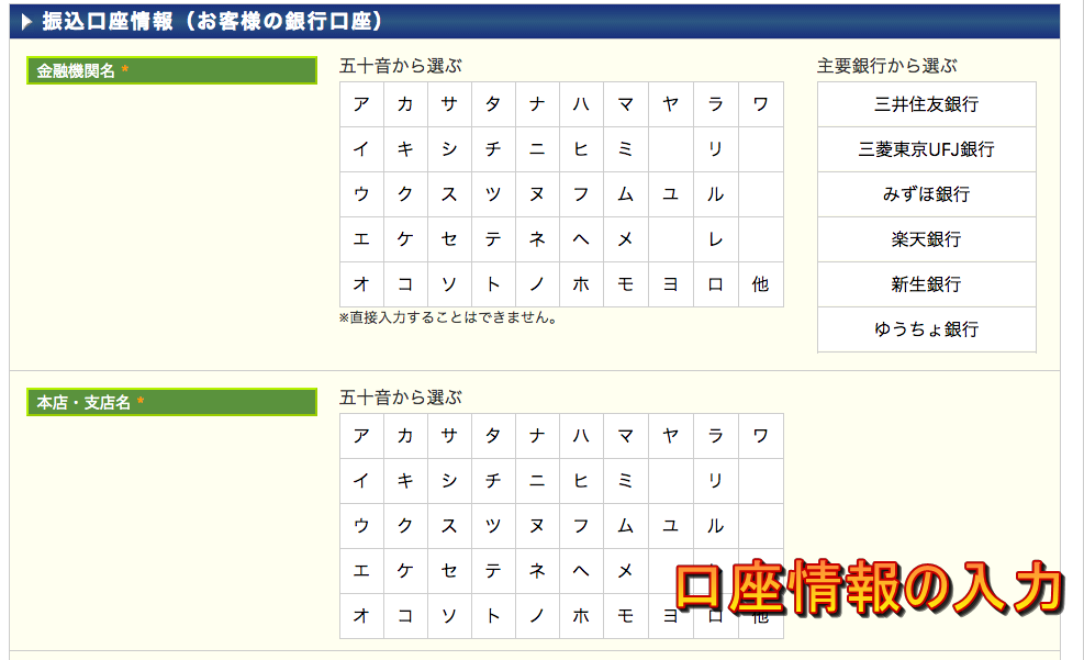 銀行口座情報(銀行名/預金名義/支店名または支店番号/口座番号)が記載されいる画像