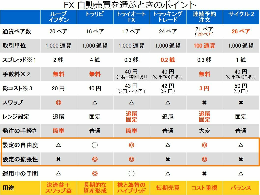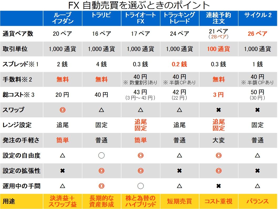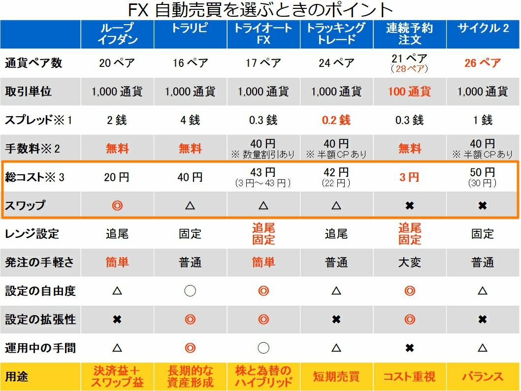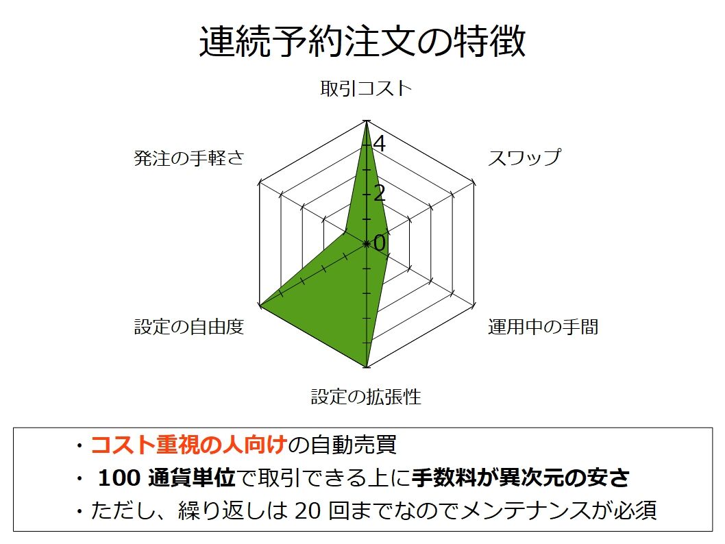 ※2 連続予約注文は完全な自動売買ではないので、コスト比較から除外