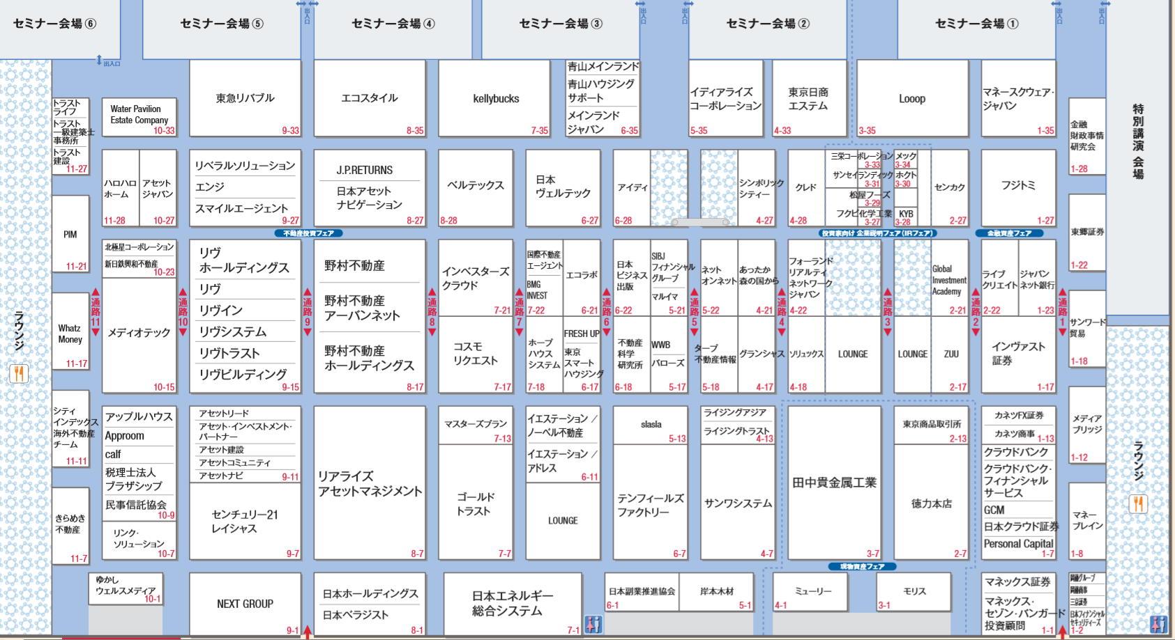 会場の見取り図を見てみると、『マネースクウェア・ジャパン』、『インヴァスト証券』、『クラウドバンク』など日頃、運用でお世話になっている会社がいくつかありますね。
