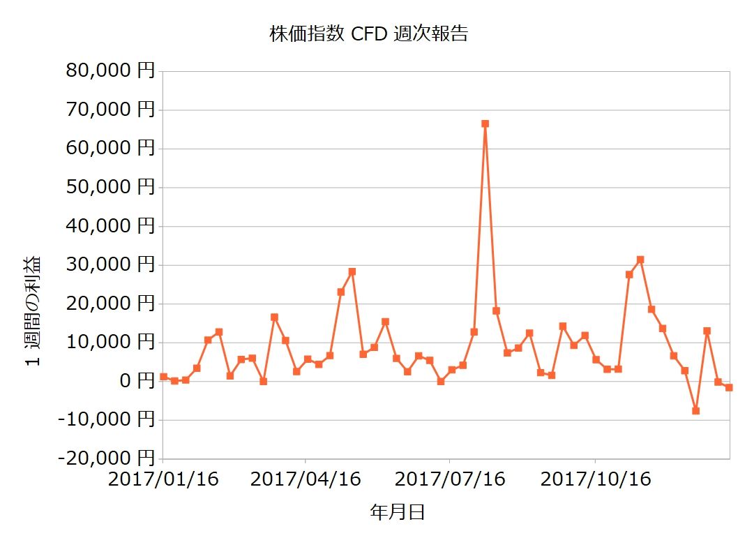下の図は株価指数CFDの1週間ごとの利益です(´∀`)