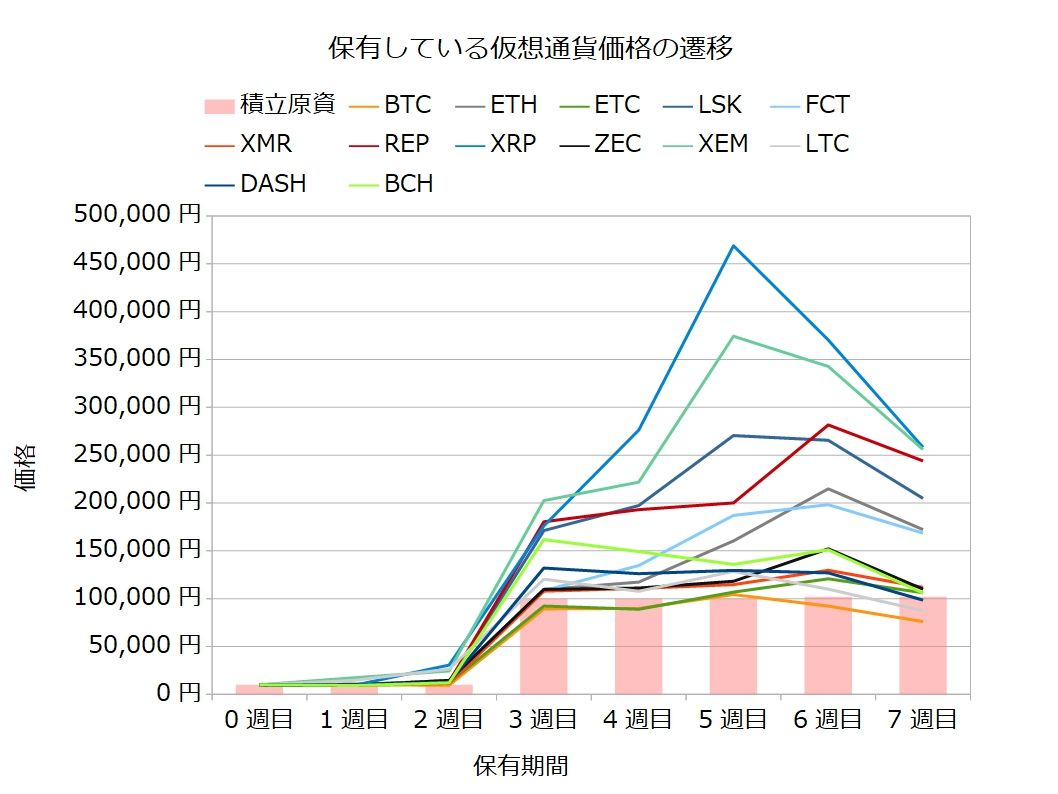 下の図は保有している通貨ごとの価格の遷移を表しています。