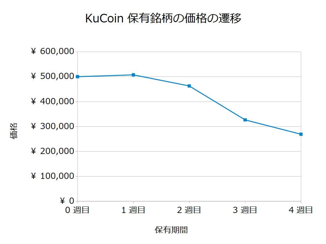 下の図はKuCoin(クーコン)で保有している仮想通貨の価格の遷移を表しています。