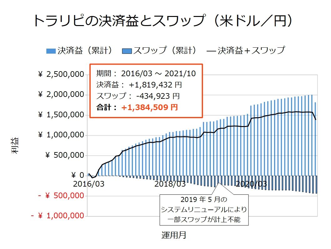 マイナススワップは決済益の20%程度でした。