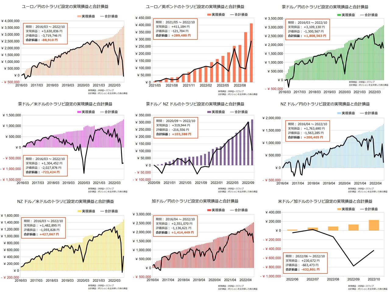 ただし、各月の含み損は月末の値にしていますので、瞬間的にはそれ以上の含み損が発生していた可能性が高いです。