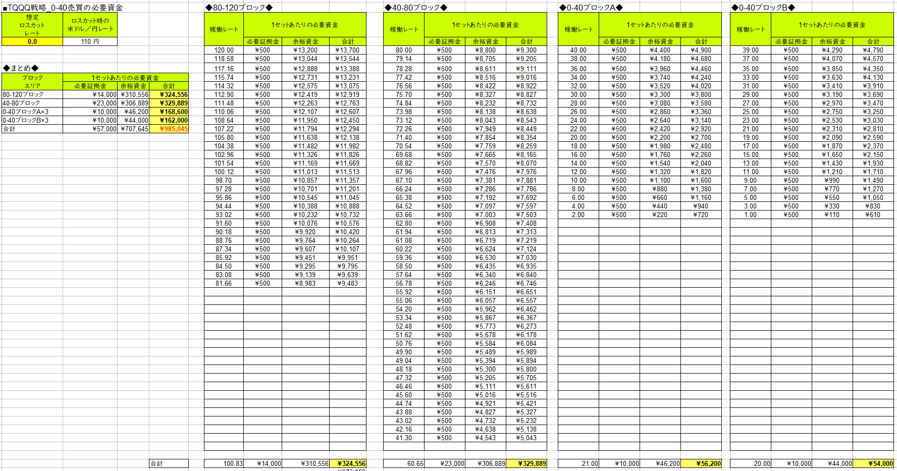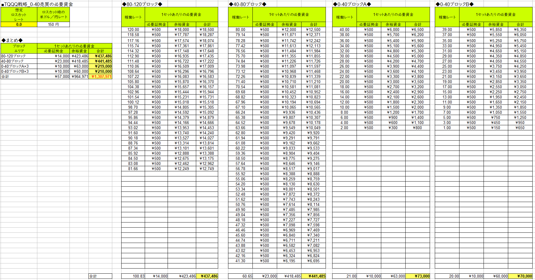 - 必要資金:TQQQ戦略0ドルまで、QQQ戦略50%の暴落に耐えられる資金量