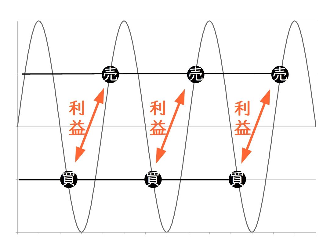 ある一定の範囲で上下するから買って、売ってを繰り返すことができます。