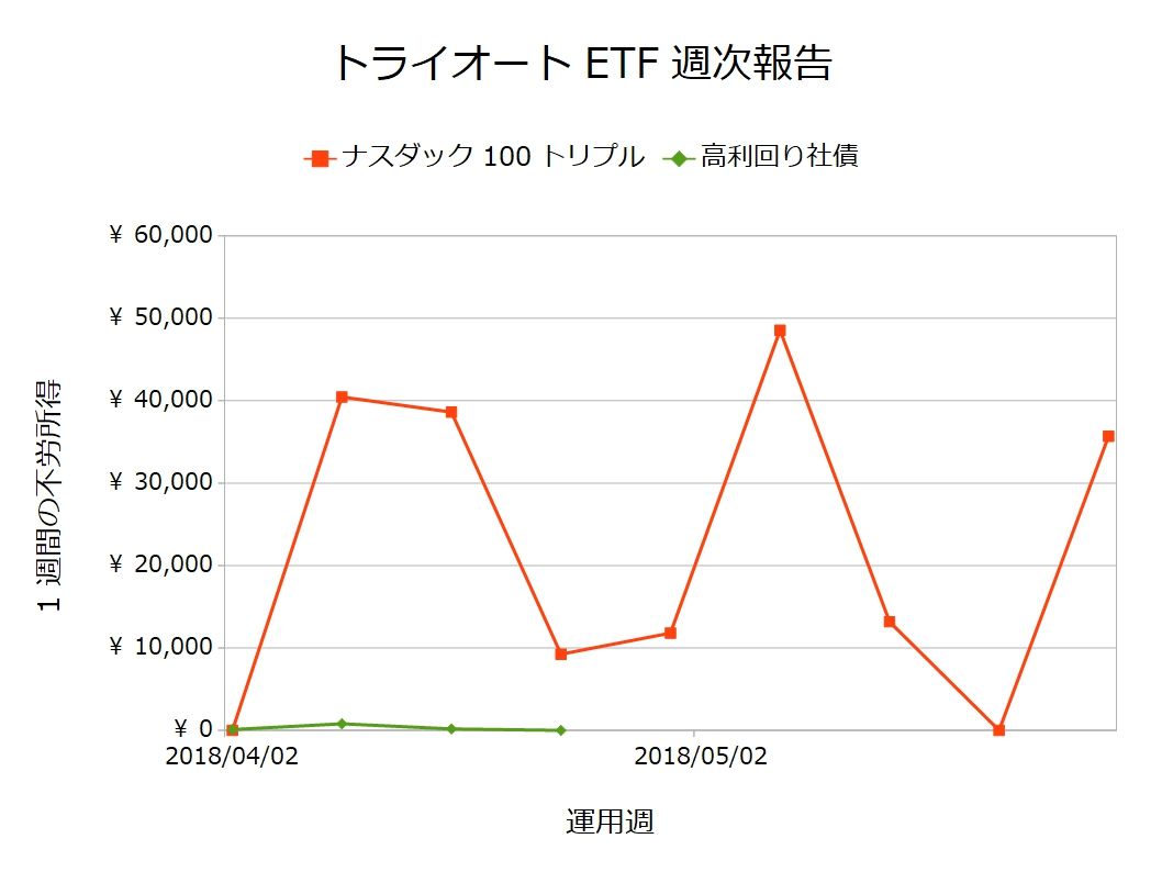 5月28日週のトライオートETFによる不労所得は35,695円でした(#^.^#)