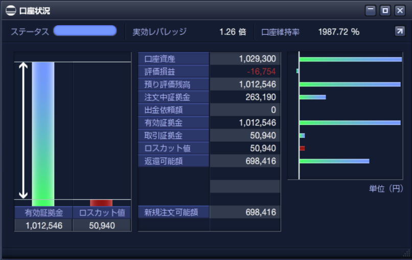 ちなみに各自動売買の口座状況は以下のようになっています。