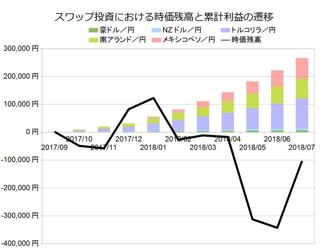 わたしが3番目に運用をはじめた商品で7月は約4万円のスワップが入ってきました。