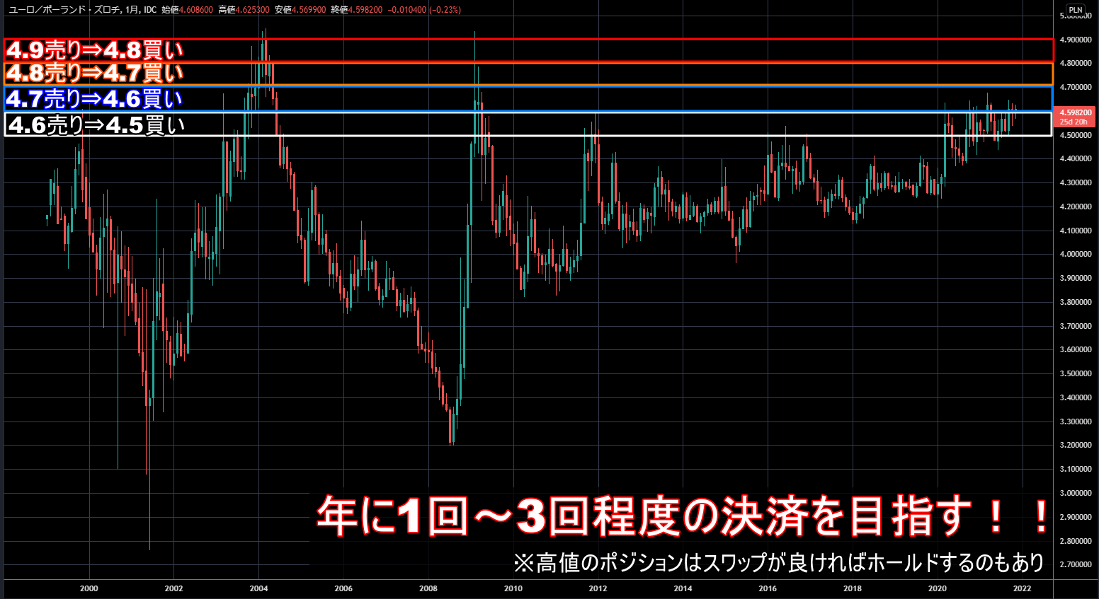 このユーロ/ズロチ戦略の終了サインはスワップです!!