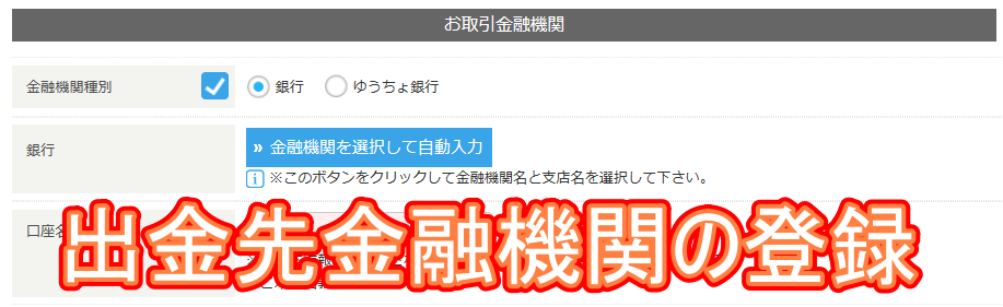 入金は別の銀行からでもできますし、後で変えることもできるので、よく利用する銀行を登録しておけばいいでしょう。