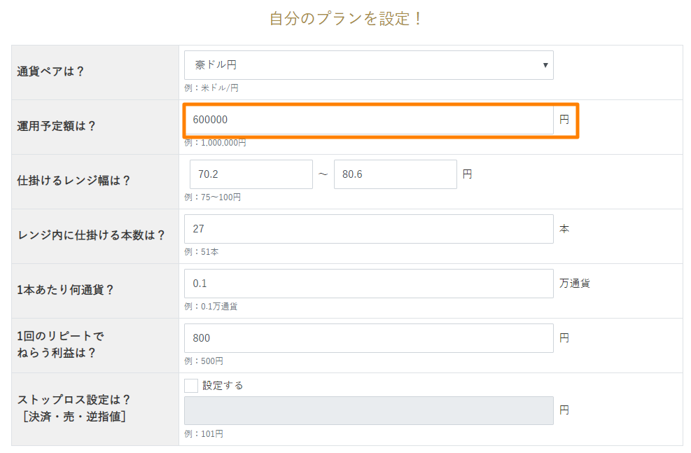 今回は豪ドル/円なら70円を想定して、レンジを設定しています。