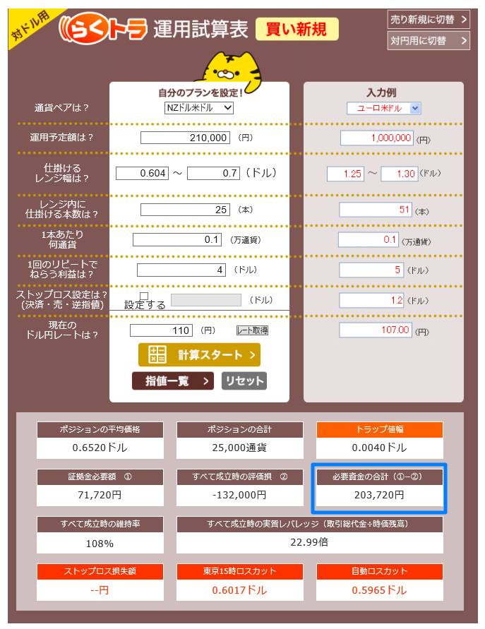 そこでまずはある程度余裕を持たせるために鈴のトラリピ設定と同様に0.60ドル~0.80ドルまではレンジを広げた方がいいでしょう。