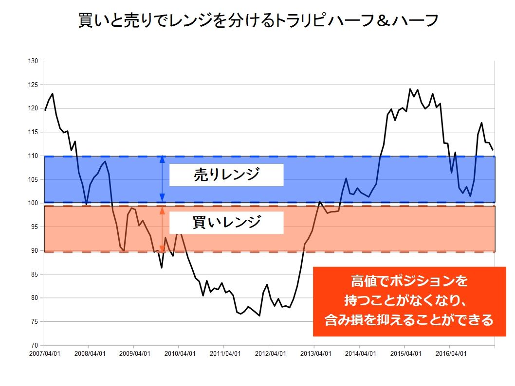 相場が比較的穏やかだった過去3年間のレンジを想定していますので、大きく下落した場合はロスカットしてしまいます。