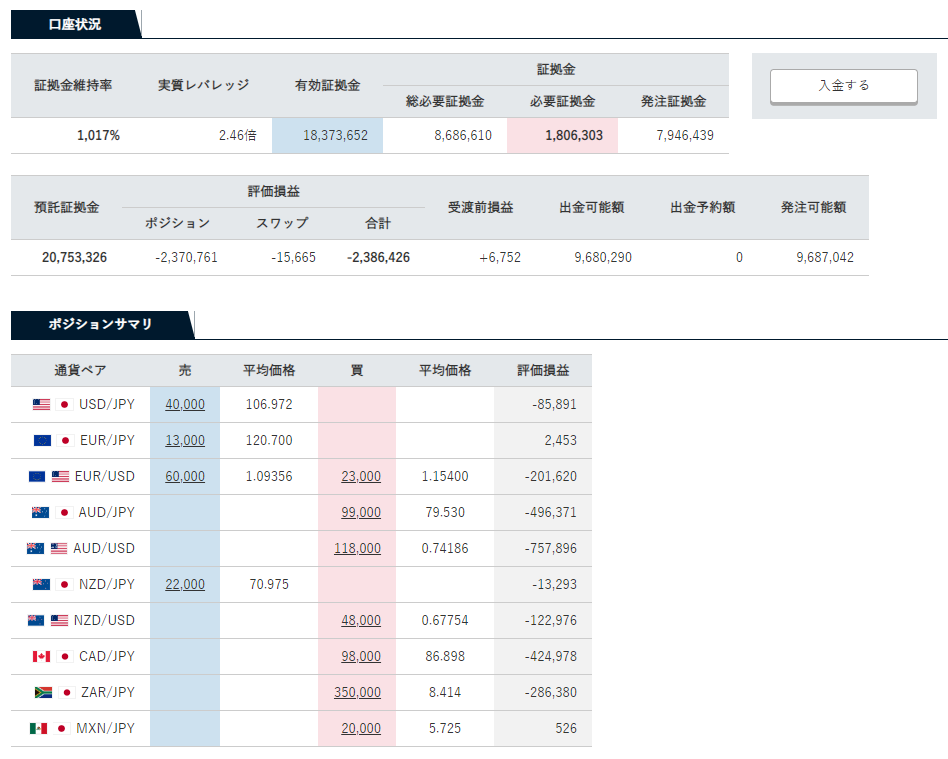 | USD/JPY | 7,538円 | 1,186,819円 | -85,731円 |