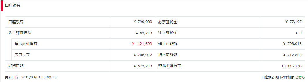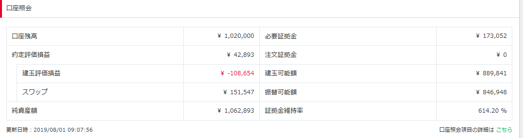 2019年7月のスワップ収入は約9万円でした(#^.^#)