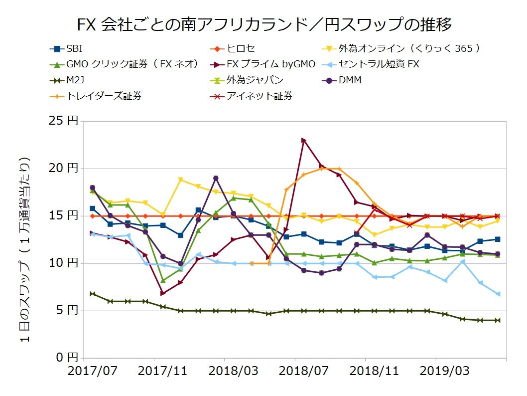 ・南アフリカランド/円のスワップ比較