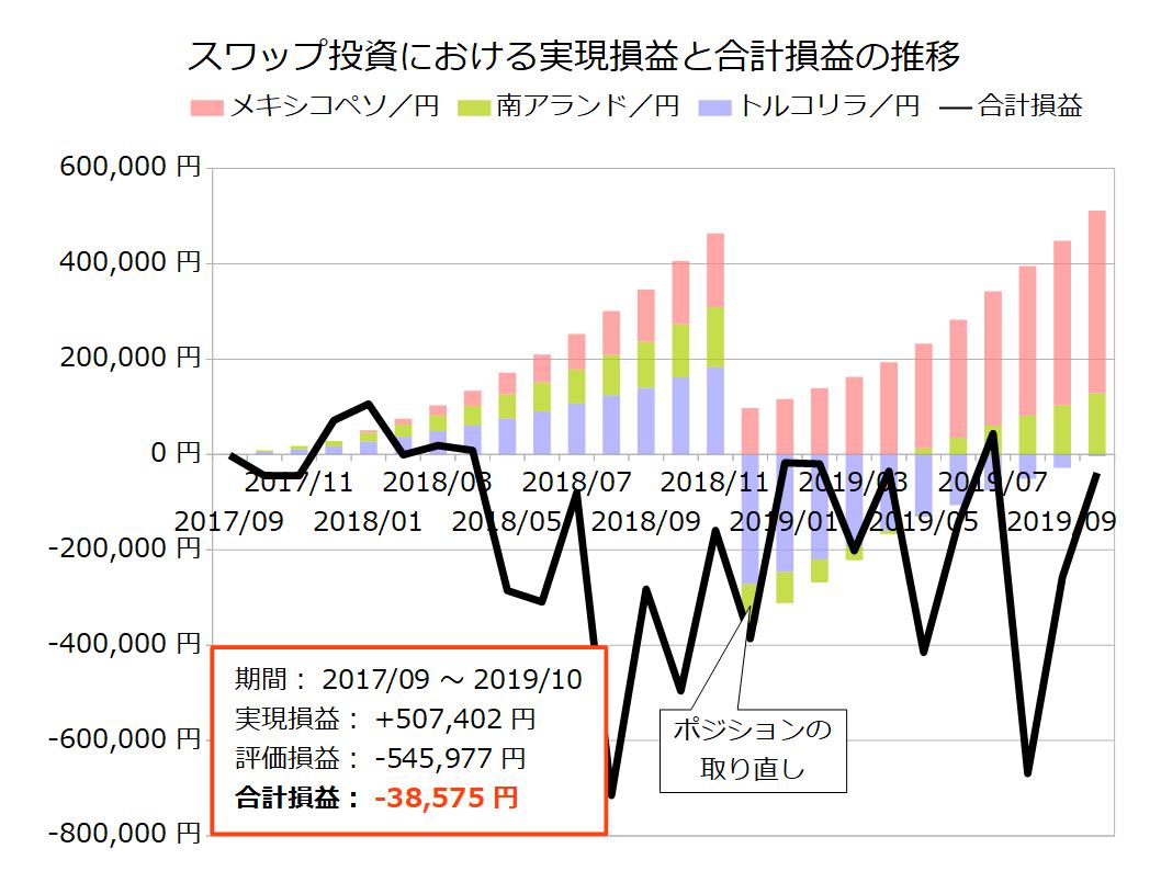 もちろん100%相関の通貨ではないので、多少の含み損は発生しますが、今のところは順調にスワップが受け取れています。