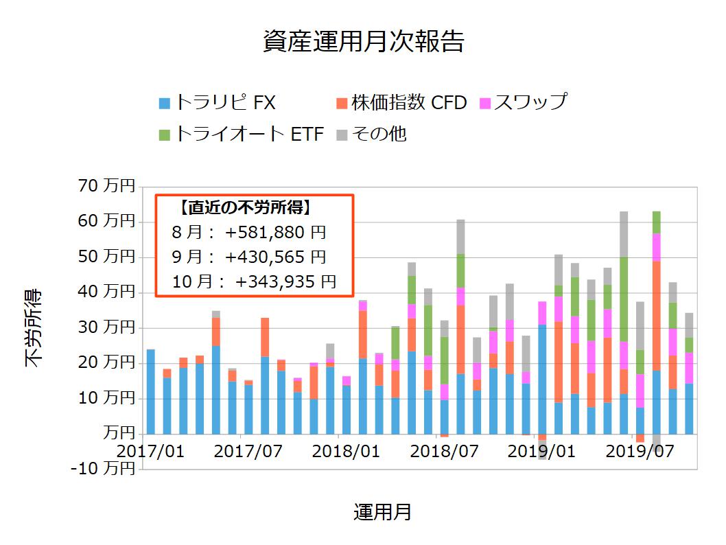 資産運用と副業で始めたブログ収入について、2019年10月の内訳を報告していきます。