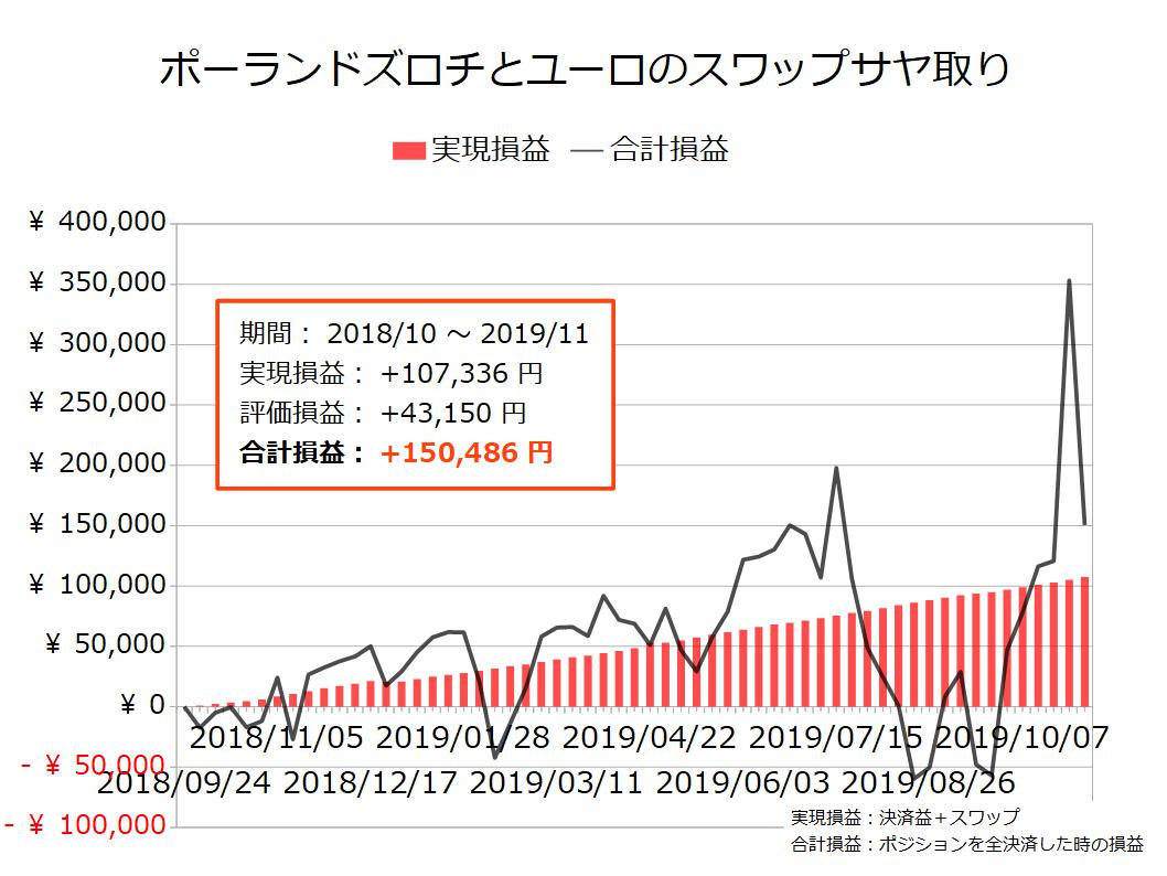 相関性の高いポーランドズロチを買って、ユーロを売ることで、含み損はほとんど発生しないのに、スワップは受け取れるという夢のような運用法です(^^ゞ
