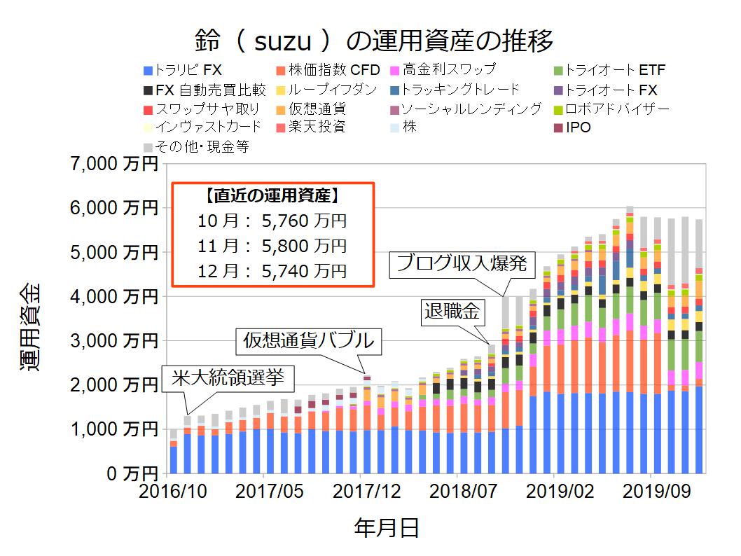 2019年の後半は個人⇔法人で混乱したこともあり、停滞しているように見えますが、基本的に資産が増えていると思います。