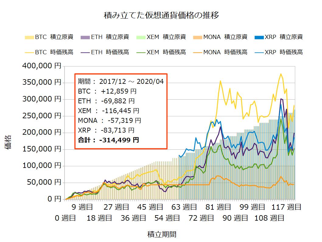 4種の仮想通貨を毎月1日に1万円ずつ積み立てるだけの非常に単純な投資法です(^^♪