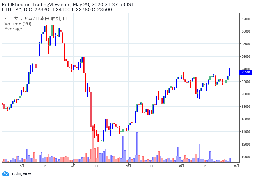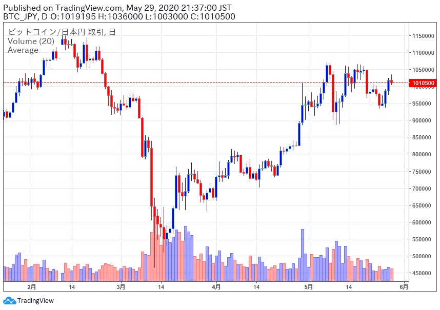 コロナショックでは流石に暴落し過ぎだったのか、最近はビットコインは100万円前後でレンジを形成、その他のアルトコインは暴落前の水準を目指して回復中と言った感じです(#^.^#)