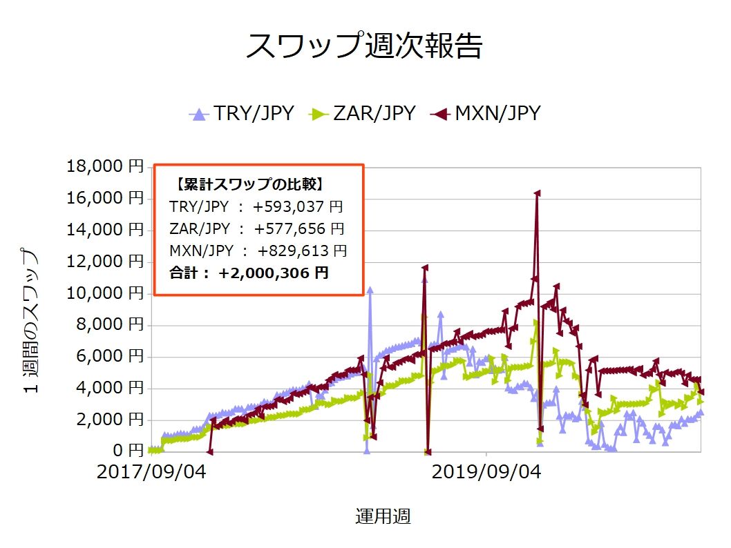 下の図は1週間ごとのスワップによるの利益です(*´ω`*)