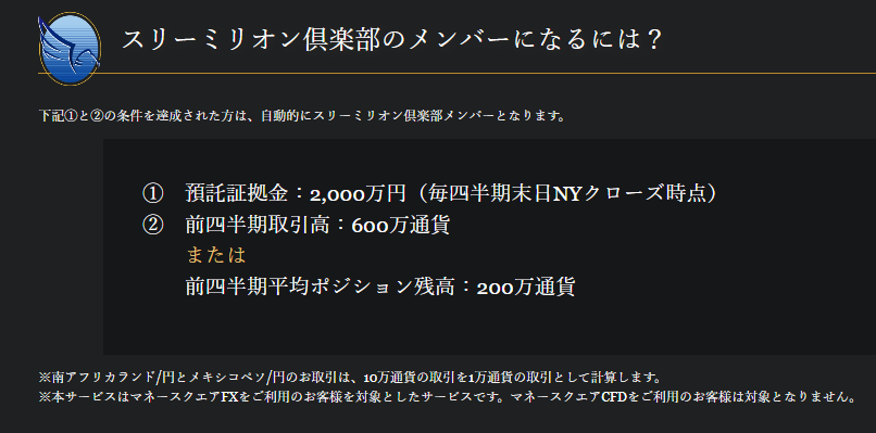 トラリピの預託証拠金が2,000万円を超え、スリーミリオン倶楽部の加入を検討しています。