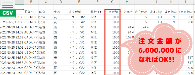 取引量の確認はCSVが便利!!
