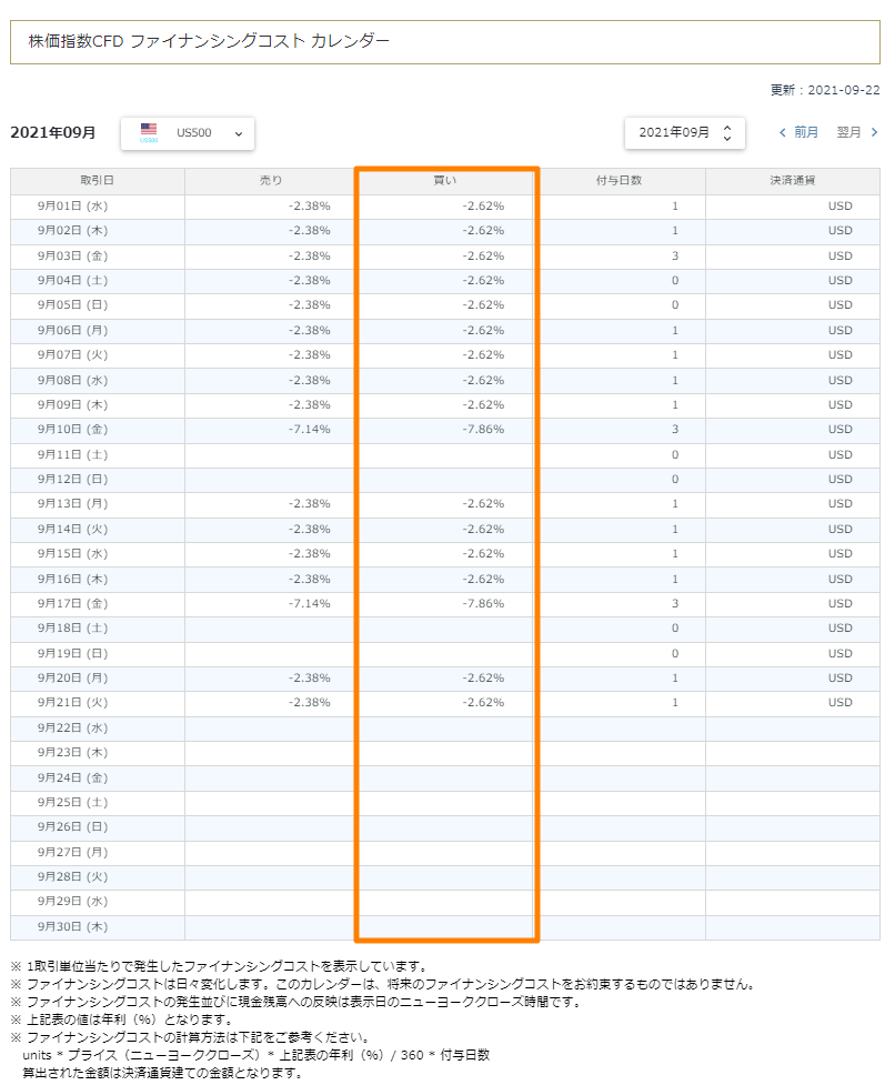IG証券については過去の実績が見つけられなかったため、資金調達コストの近いOANDAの数値を参考値として暫定で表に入れています。