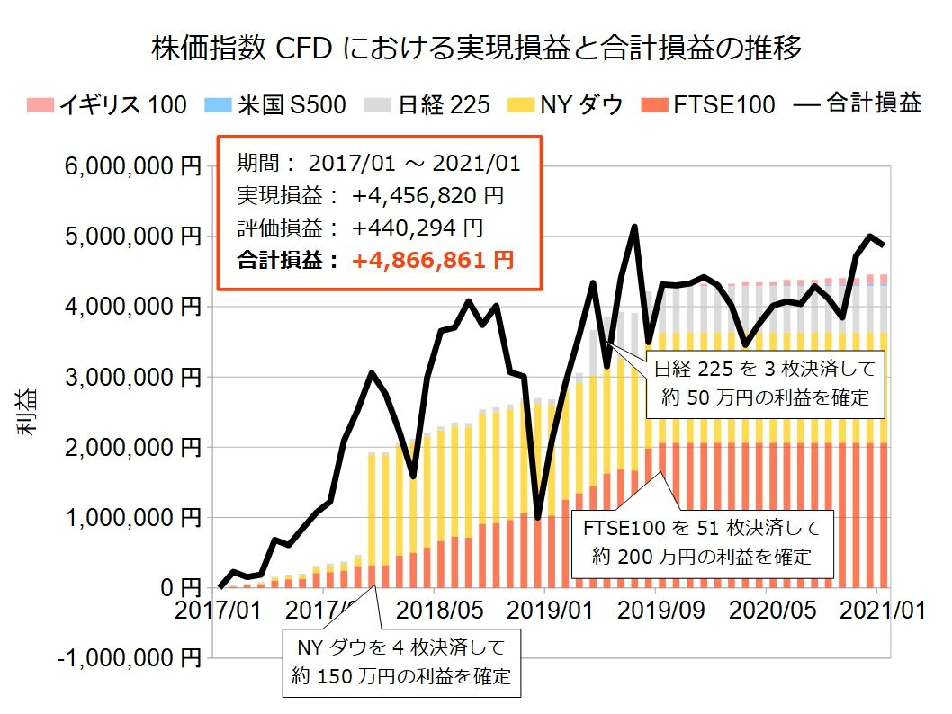 2021年1月の株価指数CFDによる不労所得は0円でした。