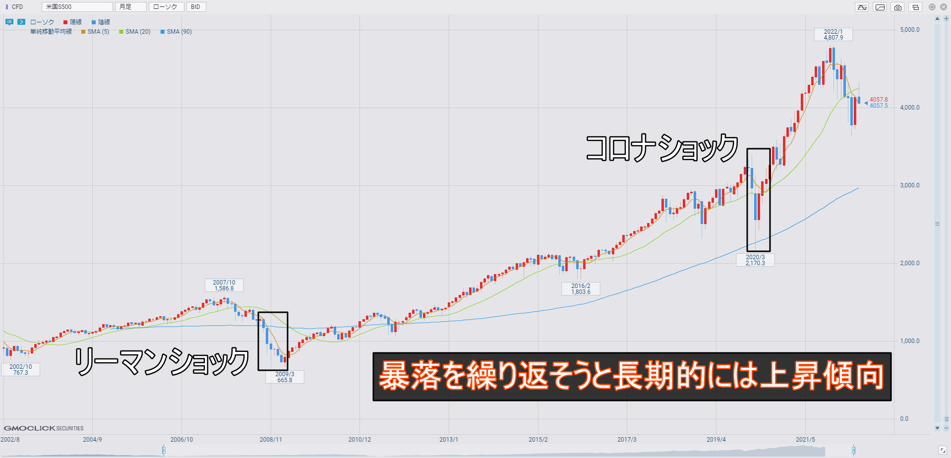 まあ、このまま回復するのか、もう一回下落するのかは分かりませんが、チャートを見れば暴落を繰り返しながらも長期的には上昇傾向であることが分かります。