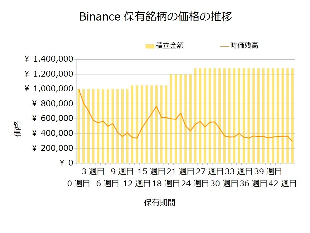 【Binanceで仮想通貨の未来へ投資】保有44週目で-983,605円です
