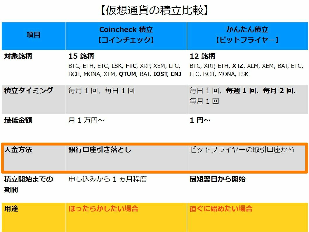 ▼コインチェックつみたてとビットフライヤーかんたん積立ってどっちがいいの?