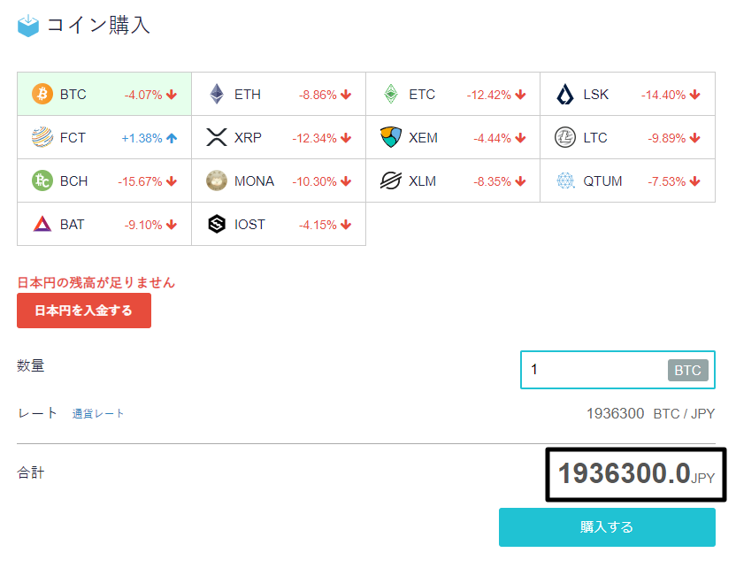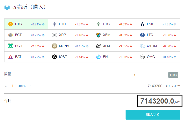 っていうと取引所(現物取引)ではなく、販売所(コイン購入)ベースでの購入となるので、このスプレッド(買値と売値の差)がサービス提供の源泉となっているのでしょう。