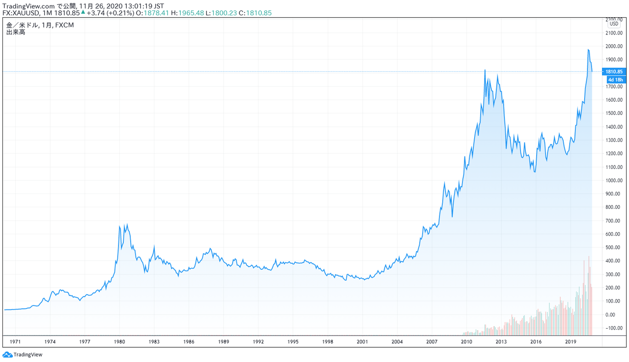 ビットコインと同じく限りある資産である金(ゴールド)の相場を見ても常に上昇し続けているわけではありません。