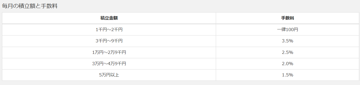 1万円積み立てる場合の手数料は約2.5%とそれなりの金額ですが、当時は好評でした。