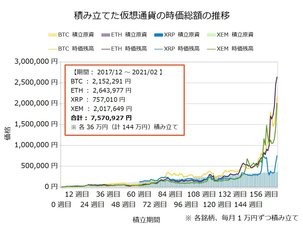 4種の仮想通貨を毎月1万円ずつ積み立てるだけの非常に単純な投資法!!
