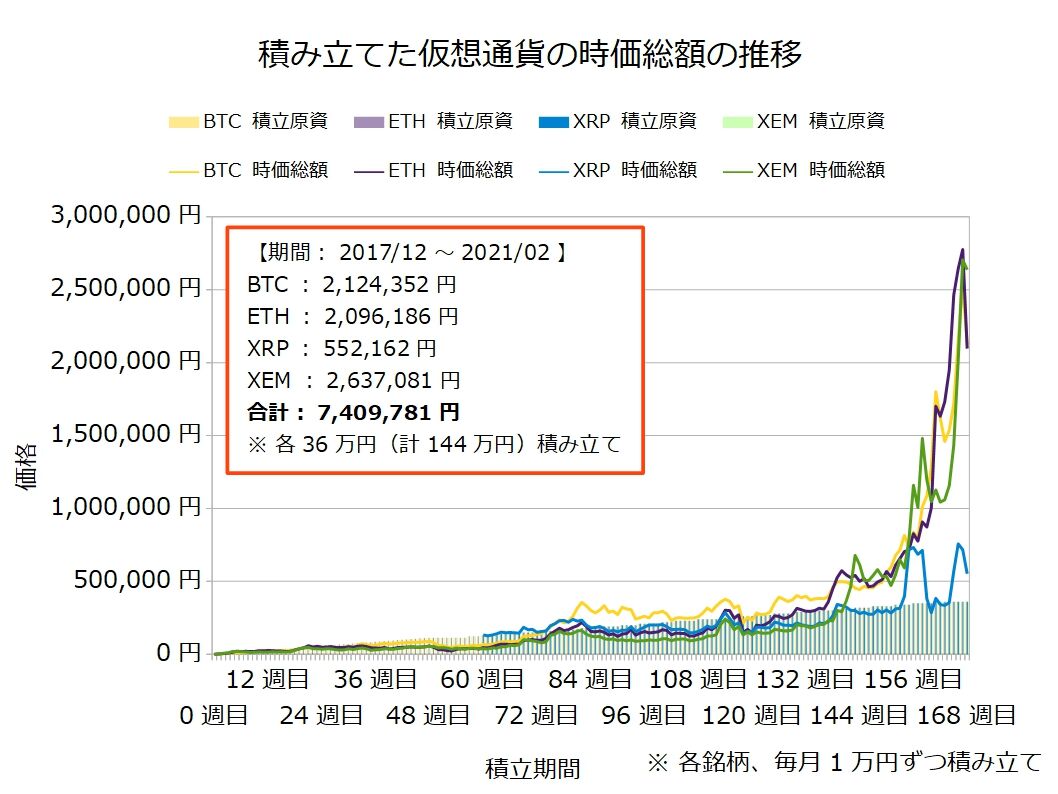 4種の仮想通貨を毎月1万円ずつ積み立てるだけの非常に単純な投資法!!