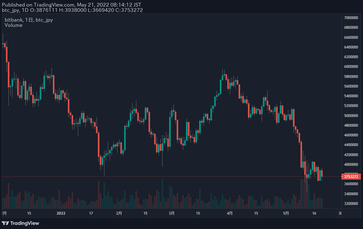 ▼ビットバンクのポートフォリオ(2022年5月21日時点)